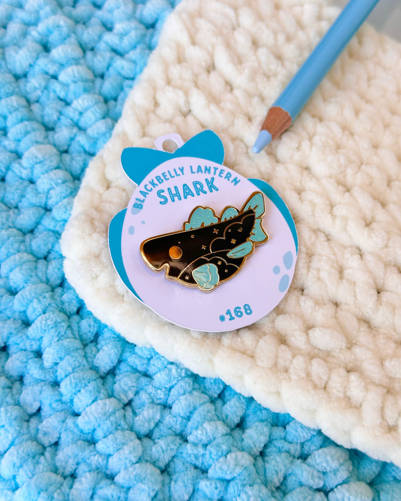 A cute enamel pin featuring the blackbelly lantern shark! This cozy enamel pin is part of my Critumi wildlife series and makes a wonderful gift for both pin badge and animal lovers. Made with gold plated metal, iridescent glitter and hard enamel.