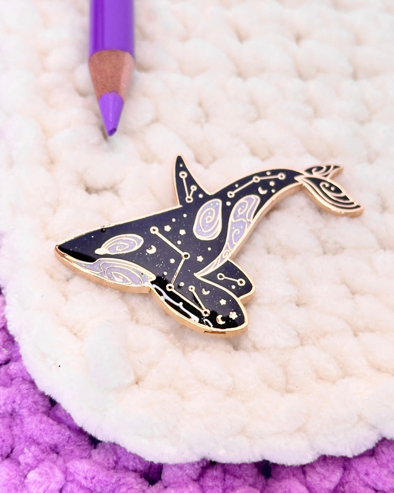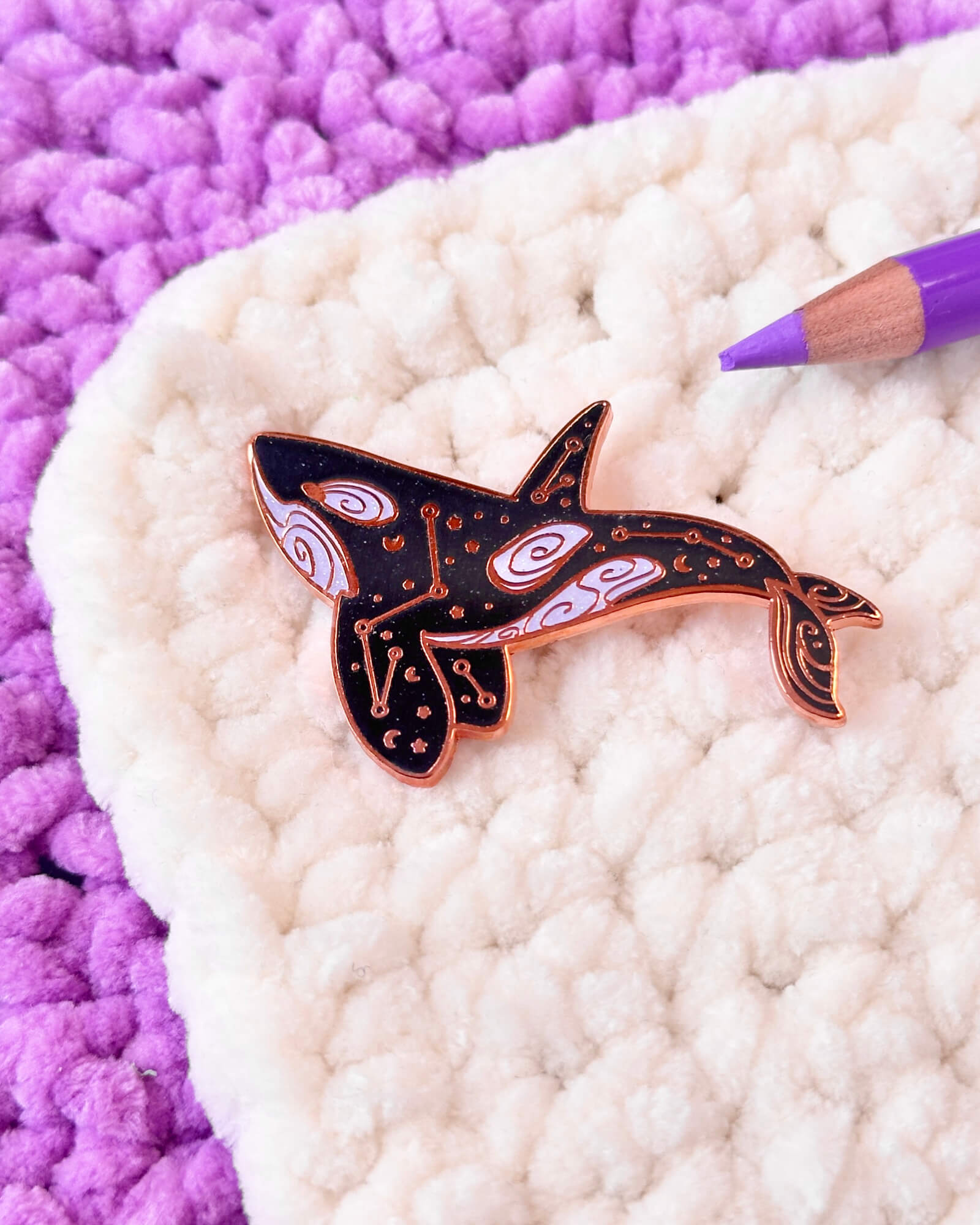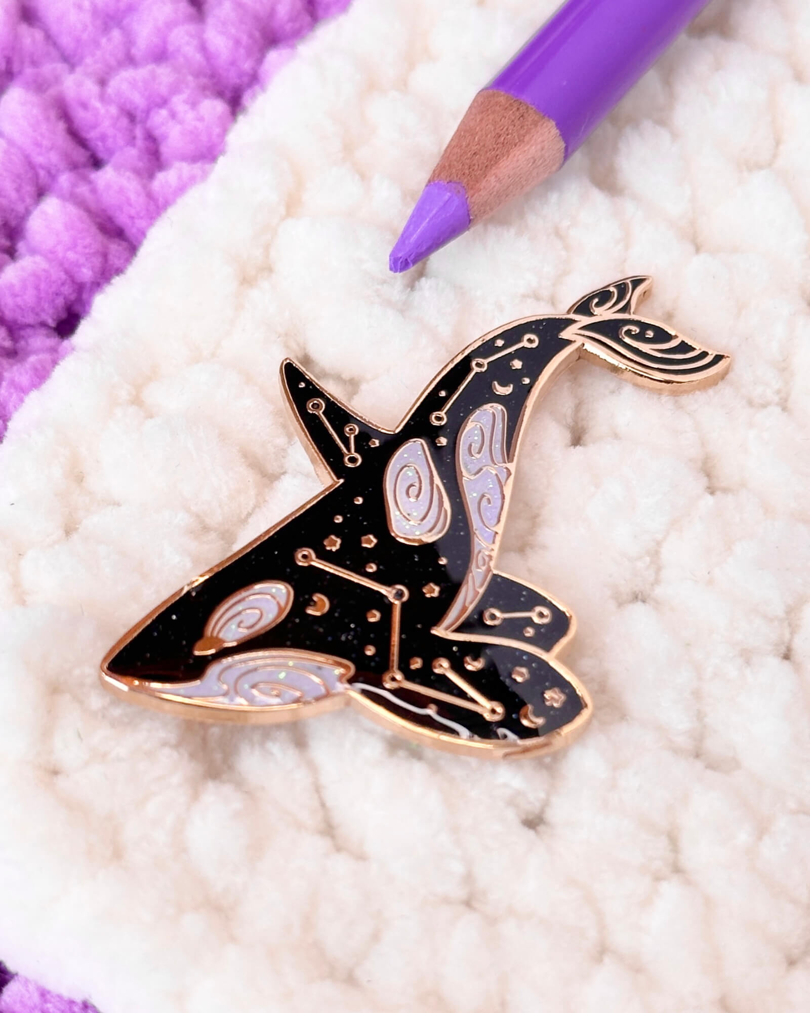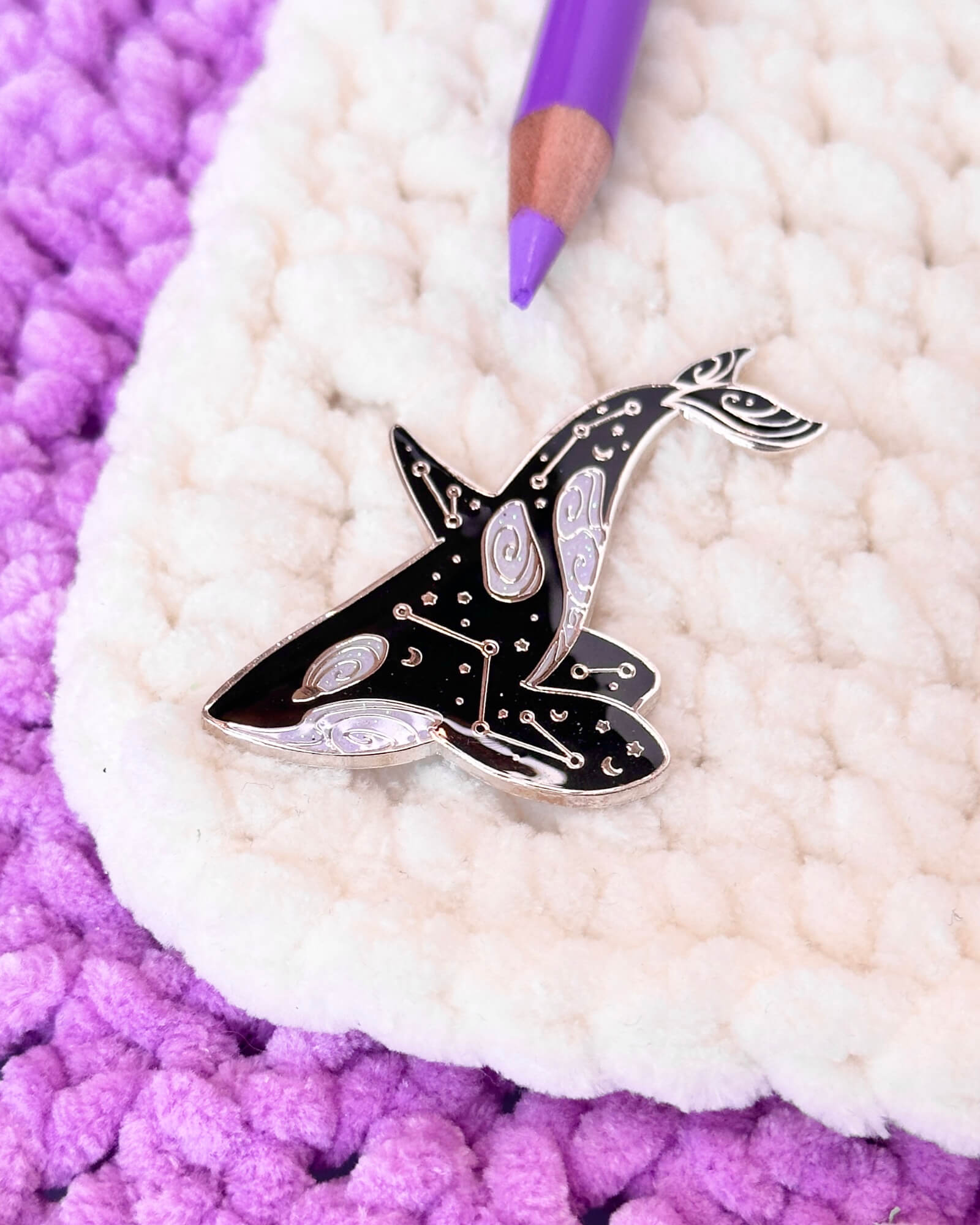 Showcase your love for wildlife with this lovely constellation orca enamel pin badge! A wonderful gift for both pin badge and animal lovers.