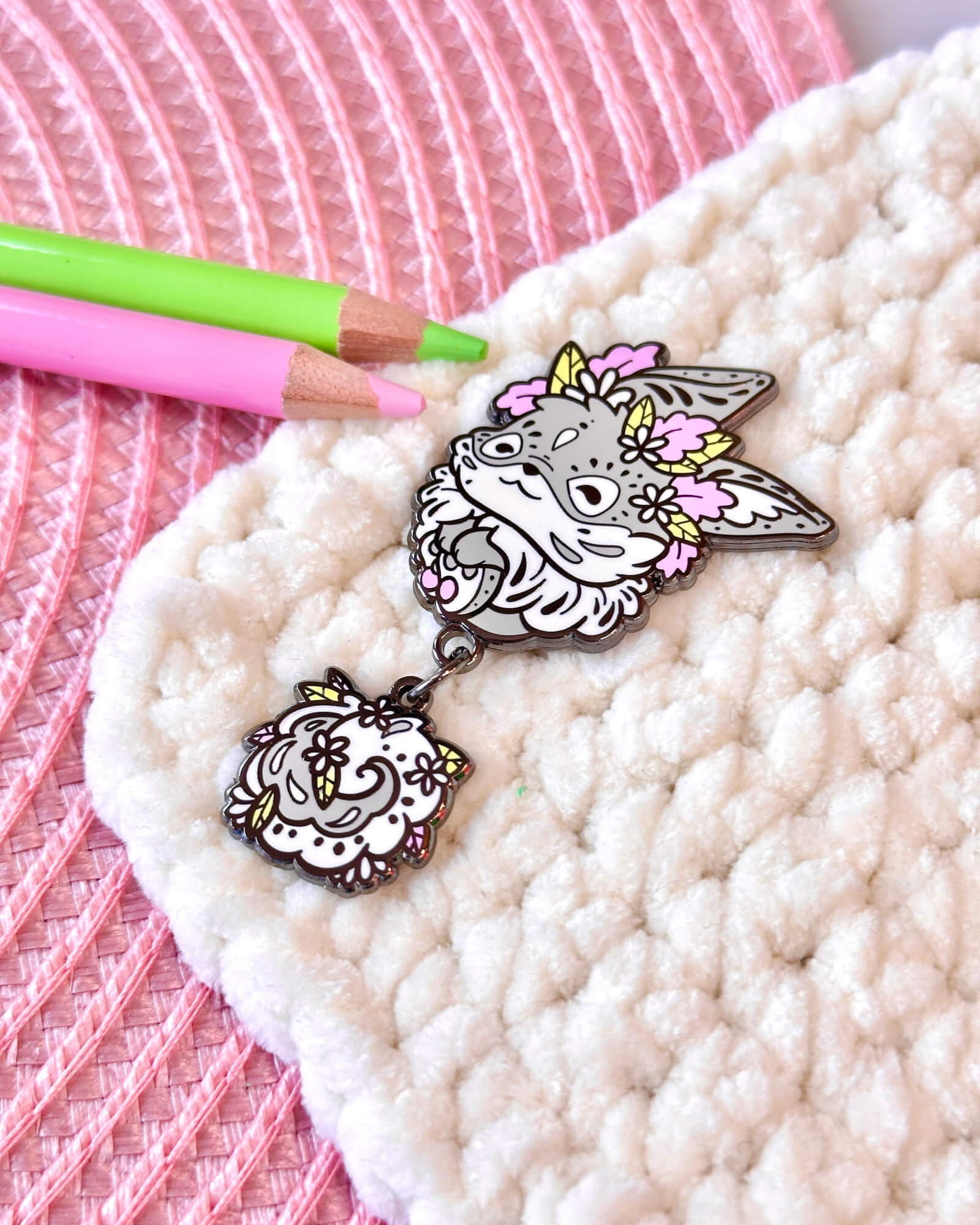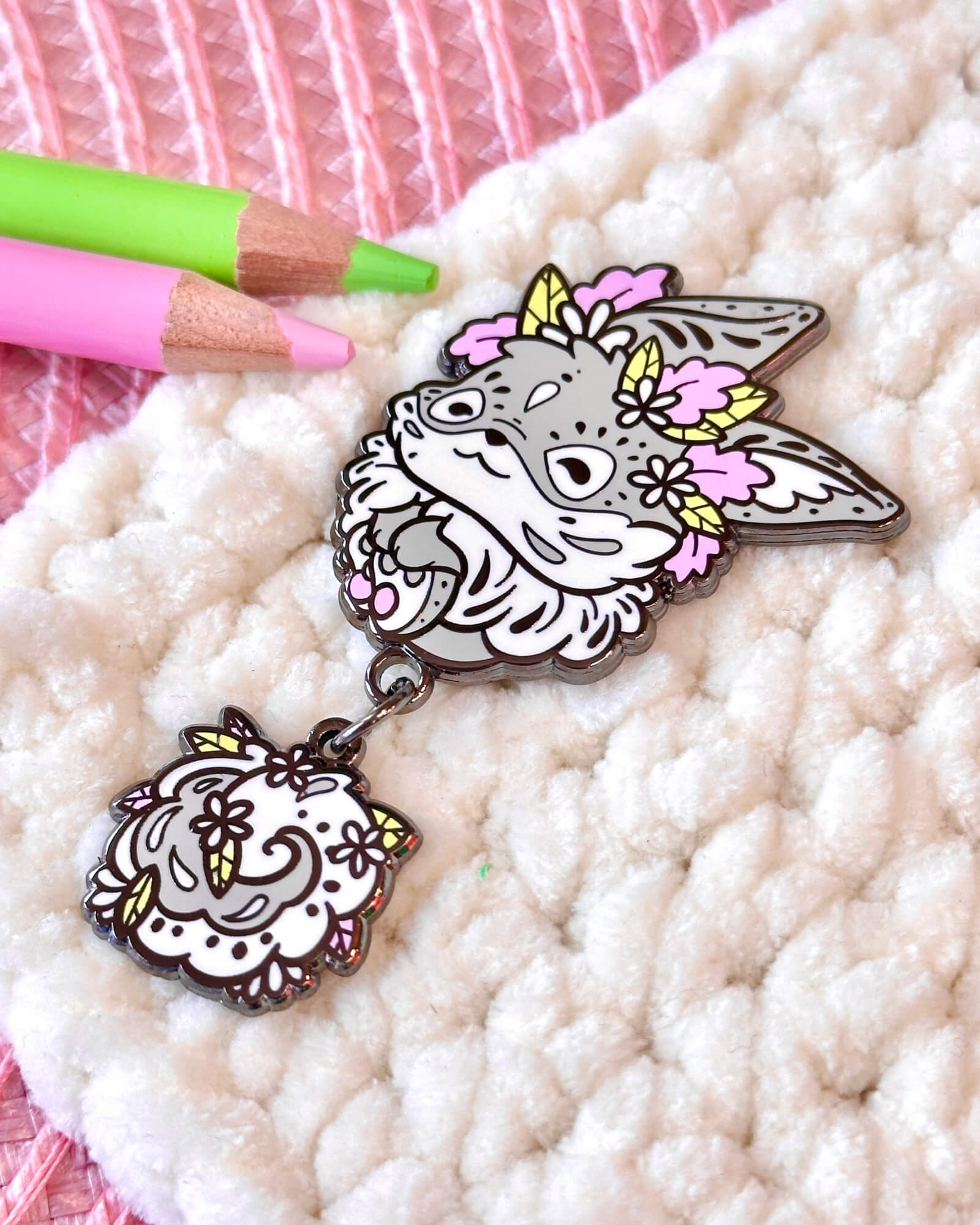 Showcase your love for wildlife with this lovely cozy bunny dangle-tail enamel pin badge! A wonderful gift for both pin badge and animal lovers.