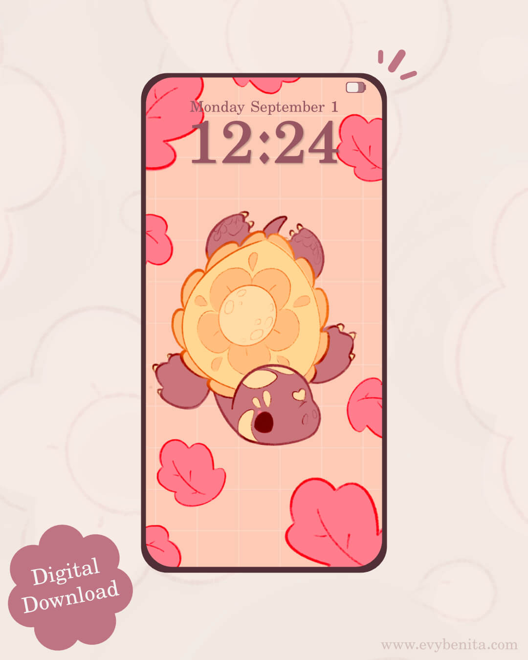 Introducing a lovely wallpaper pack featuring Cozy Exploring Autumn Turtle! Illustrated by Evy Benita, this wallpaper pack is perfect for personalising your phone screen.