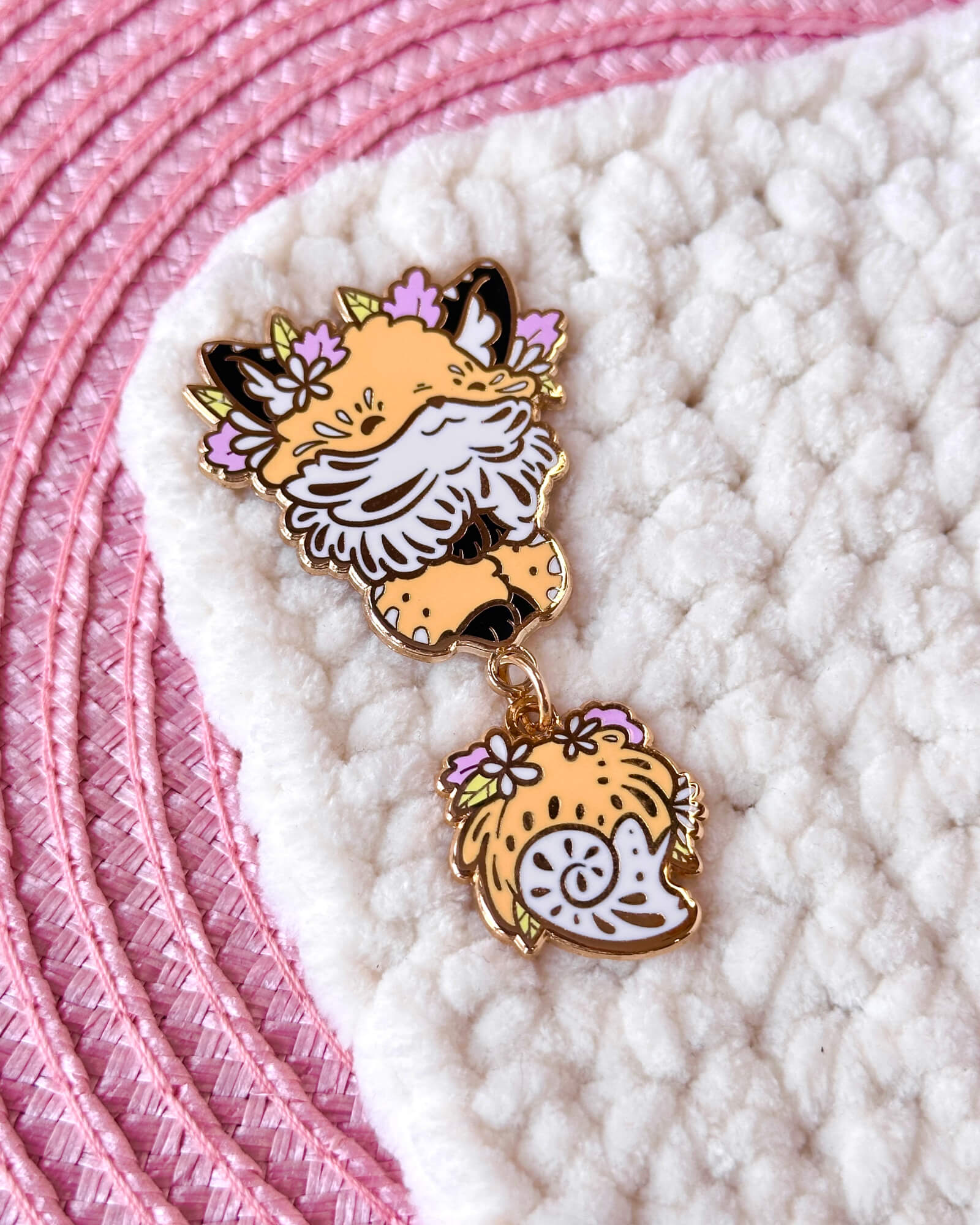 Showcase your love for wildlife with this lovely cozy red fox dangle-tail enamel pin badge! A wonderful gift for both pin badge and animal lovers.
