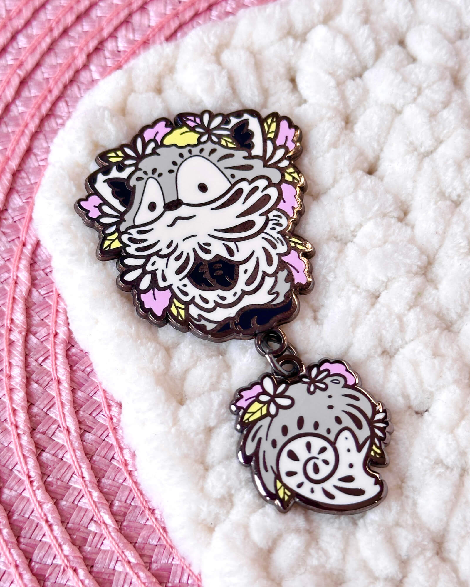 Showcase your love for wildlife with this lovely cozy wolf dangle-tail enamel pin badge! A wonderful gift for both pin badge and animal lovers.