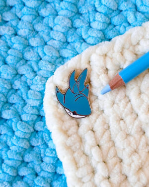 A lovely enamel pin featuring a cozy wolf dangle-tail.
