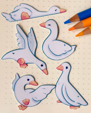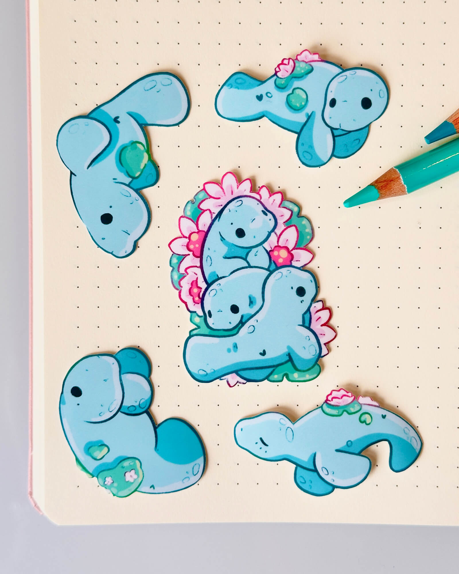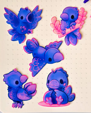 A pack of 5 water-resistant and super cute stickers! Illustrated by Evy Benita. Each sticker is approximately two inches on the longest side.