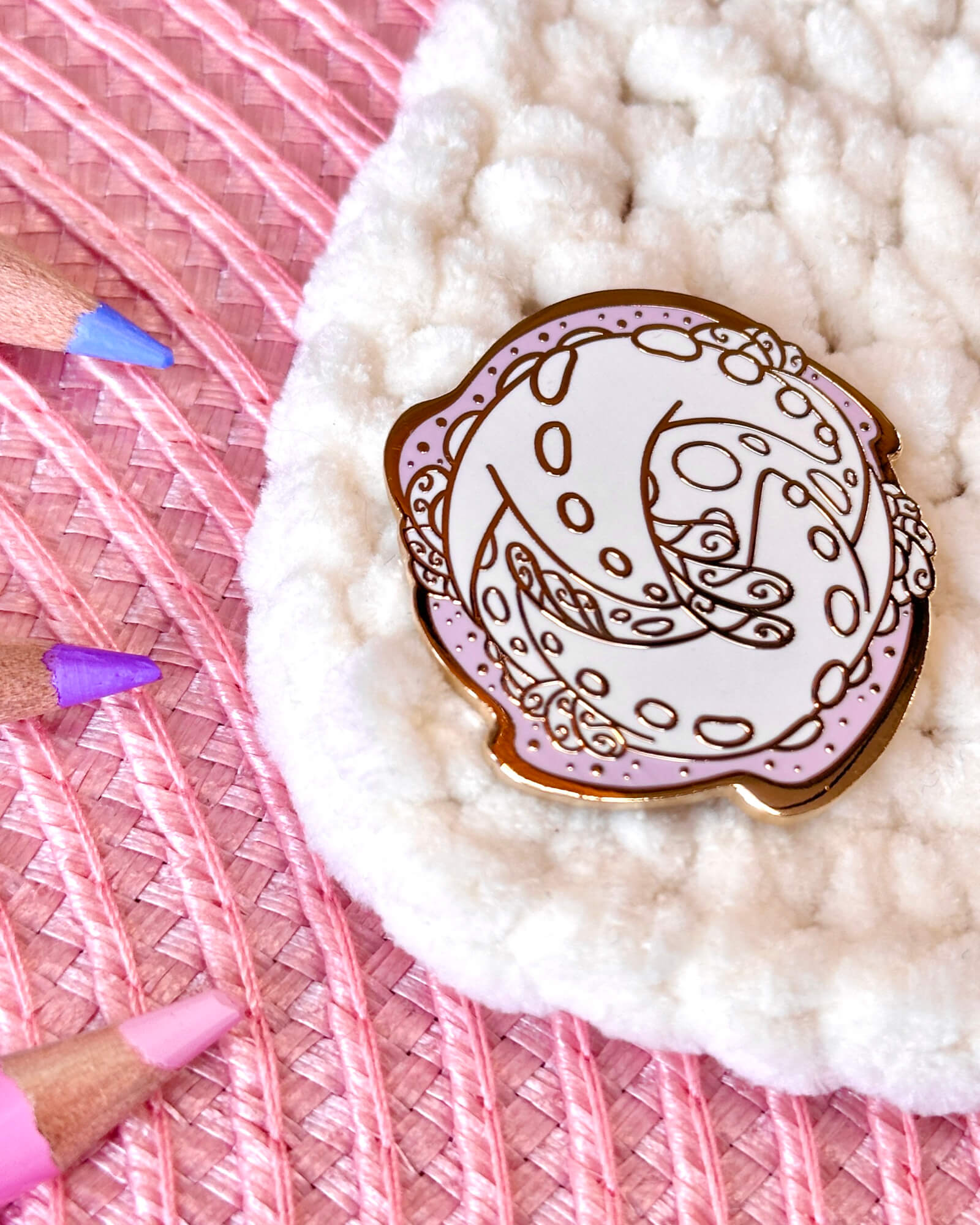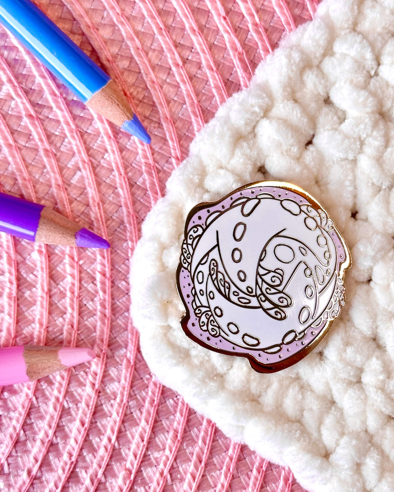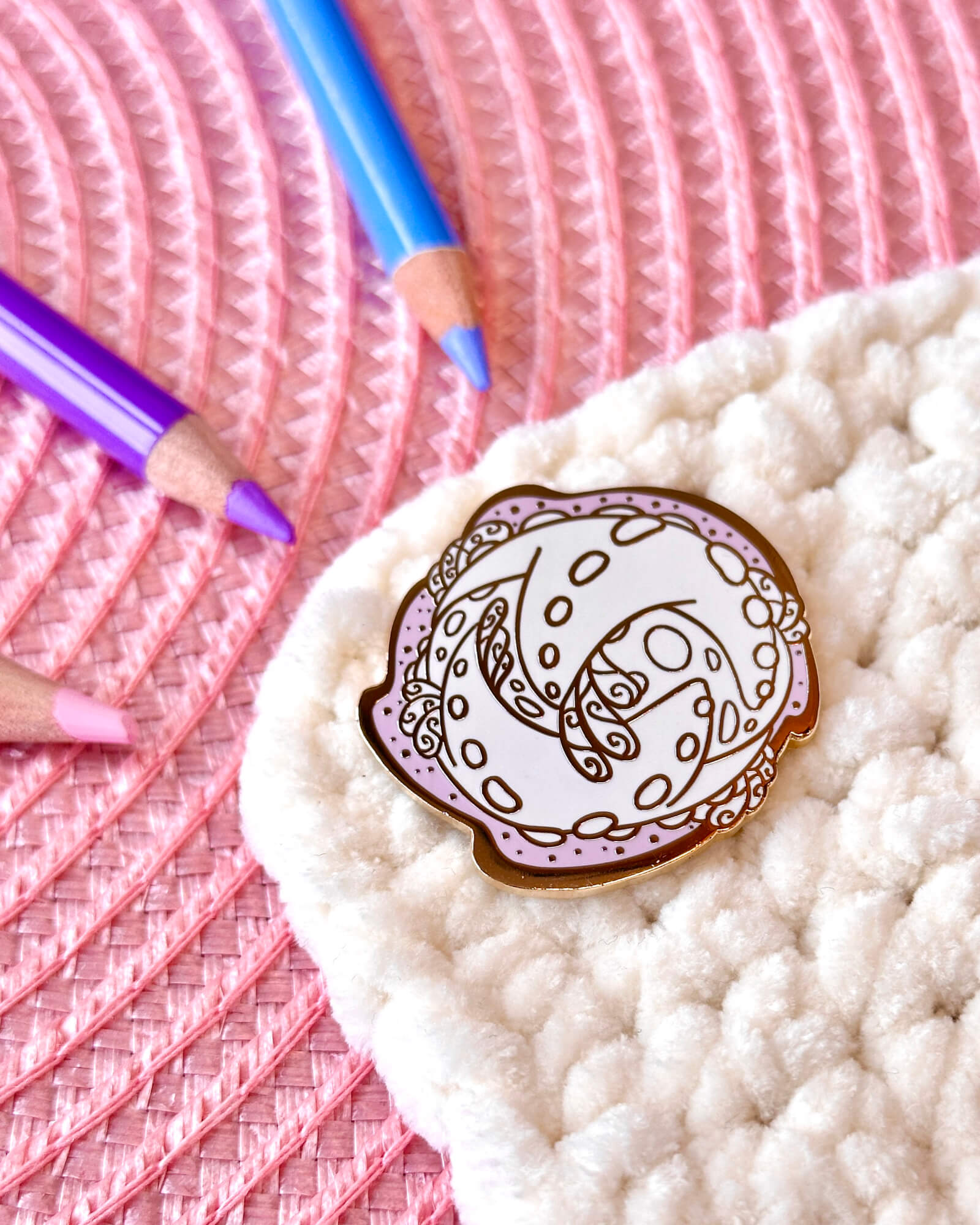 A lovely enamel pin featuring a galactic starfish comet.