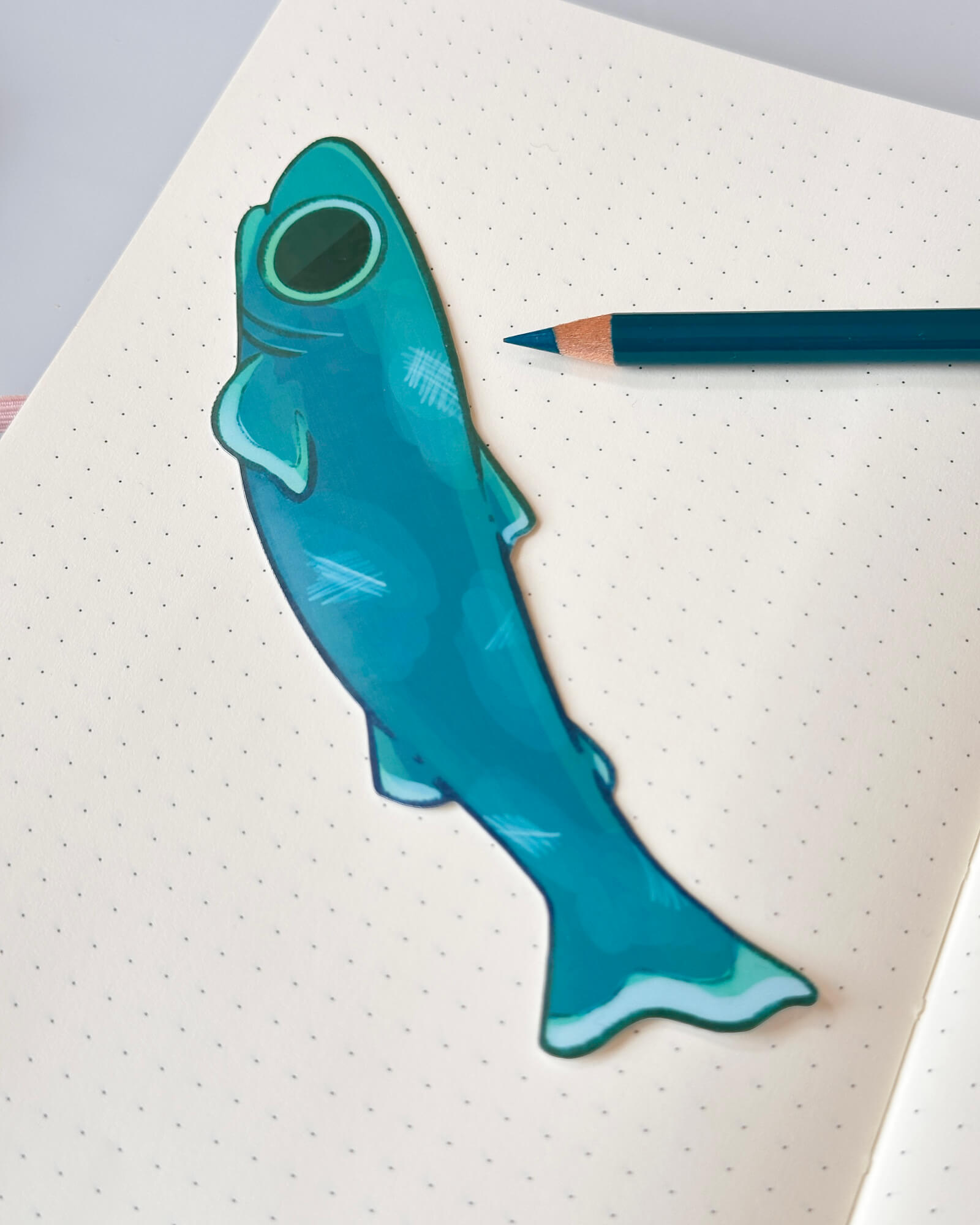 A lovely long boiii sticker featuring the Greenland Shark Illustrated by Evy Benita. This sticker is approximately 15cm (6 inches) long.