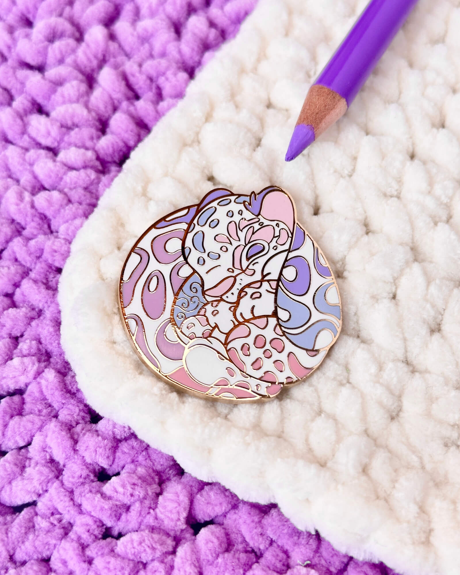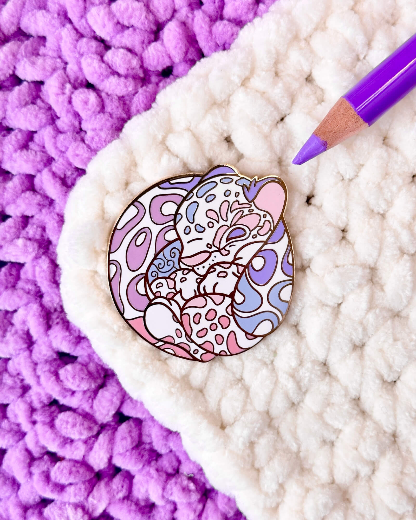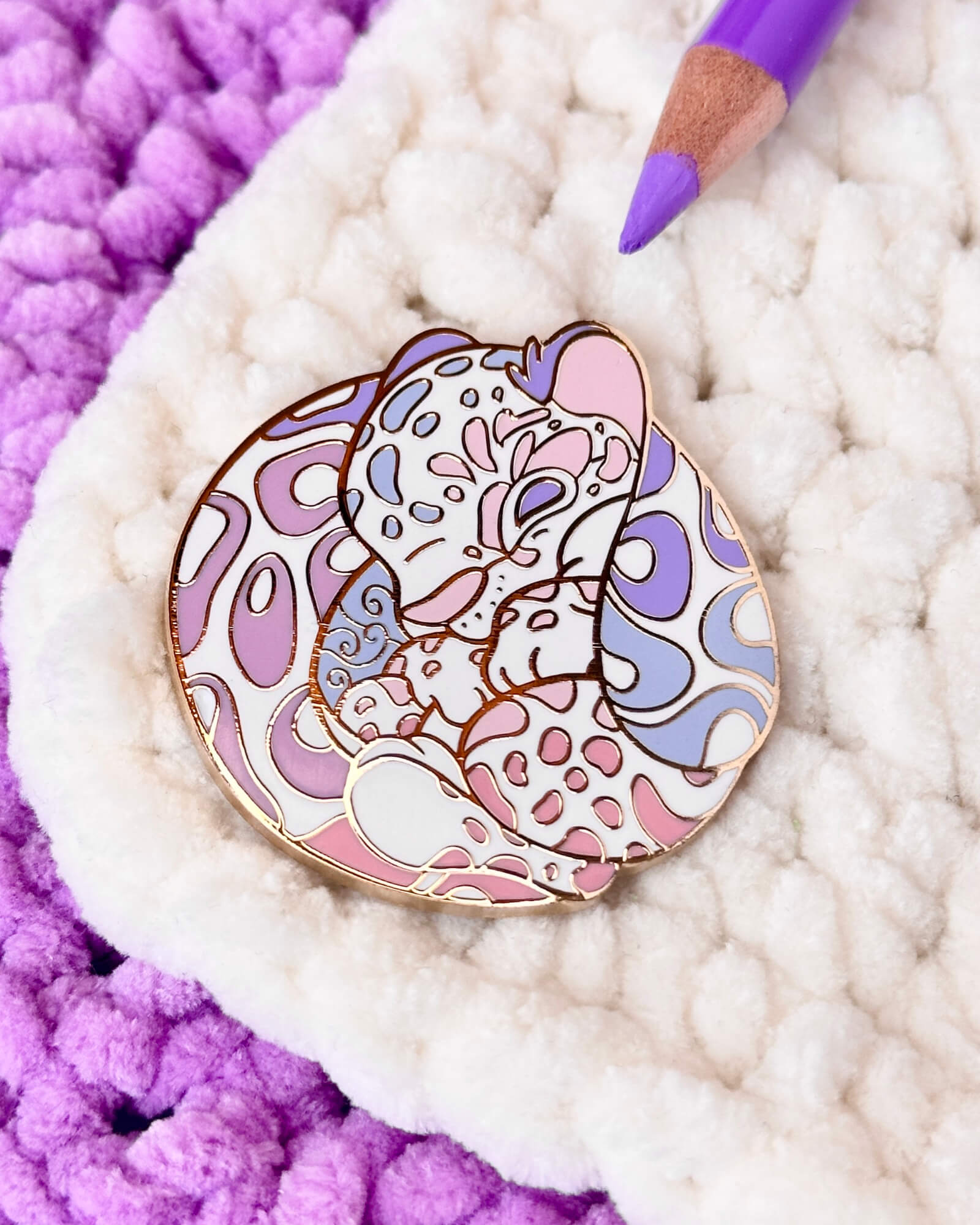 A lovely enamel pin featuring a hydrangea clouded leopard.