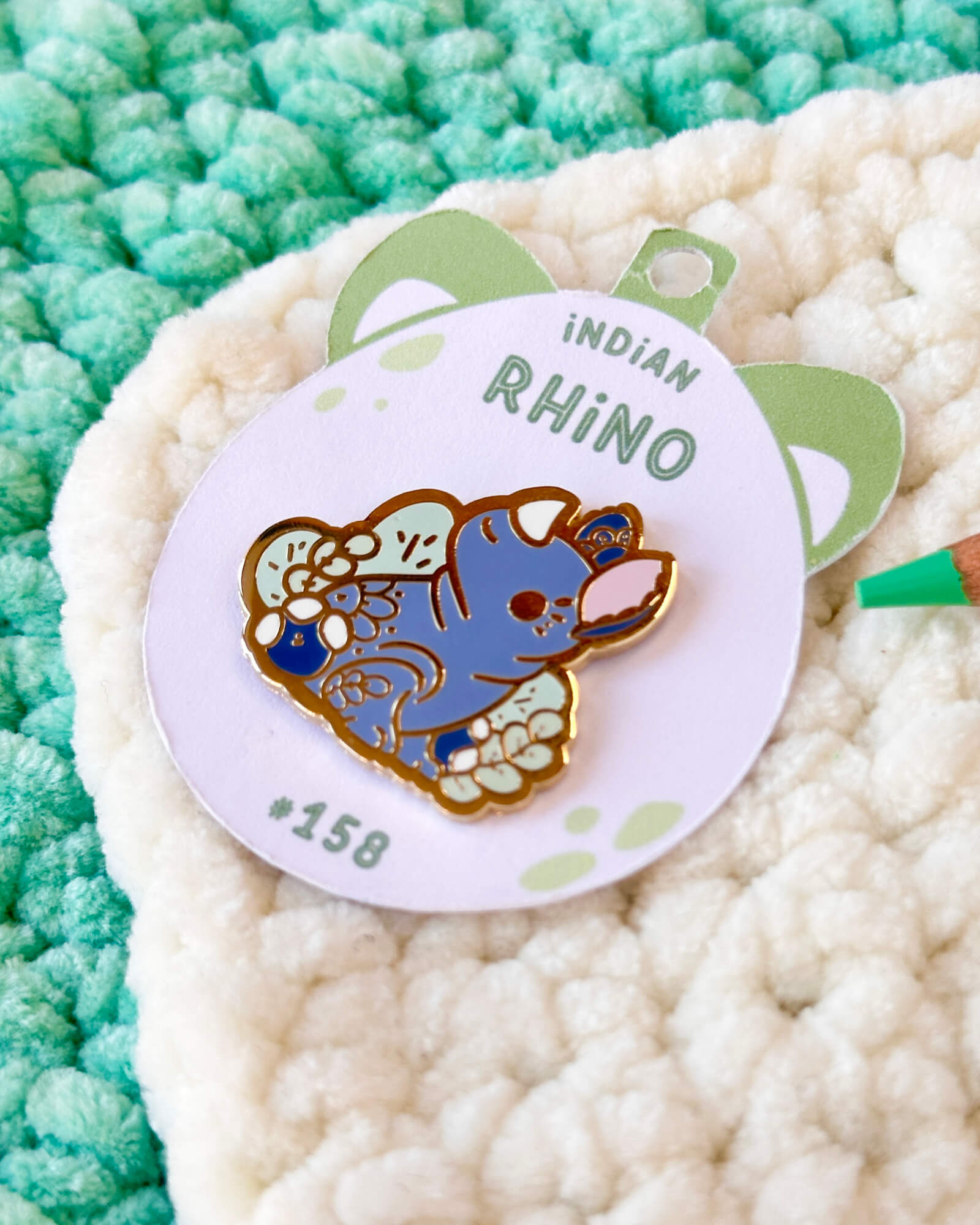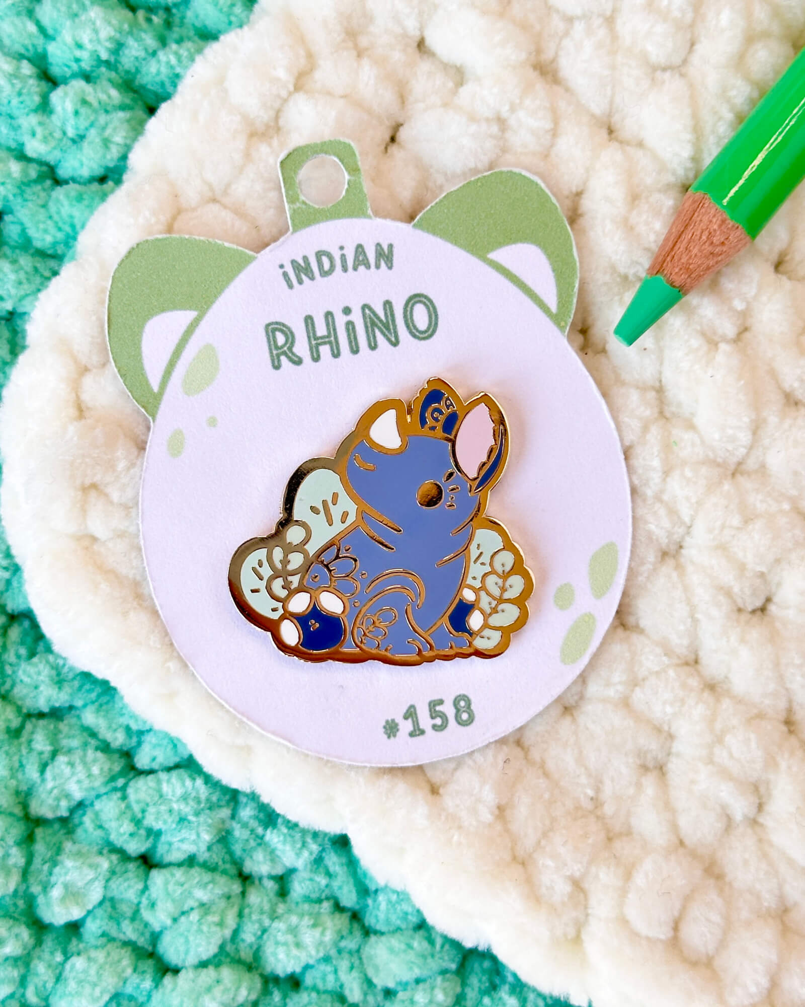 A cute enamel pin featuring the indian rhinoceros! This cozy enamel pin is part of my Critumi wildlife series and makes a wonderful gift for both pin badge and animal lovers. Made with gold plated metal and hard enamel.
