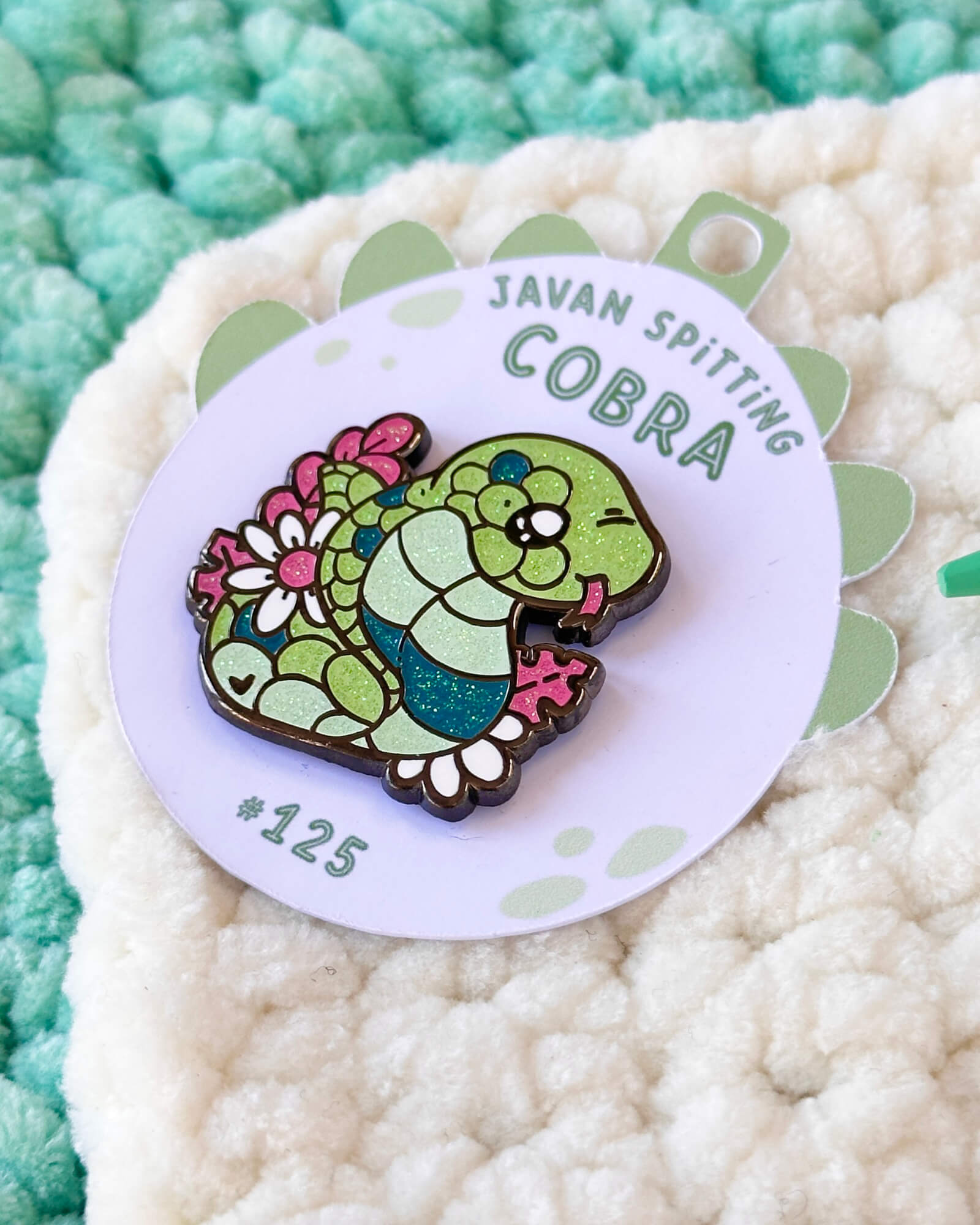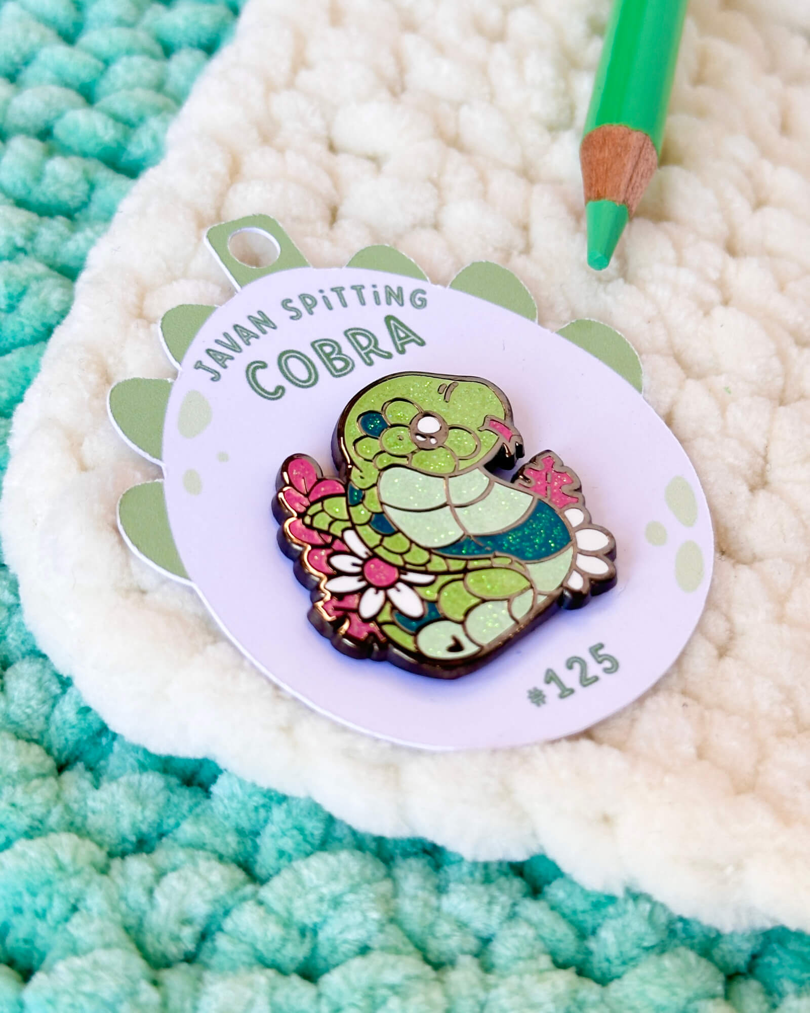 A cute enamel pin featuring the javan spitting cobra! This cozy enamel pin is part of my Critumi wildlife series and makes a wonderful gift for both pin badge and animal lovers. Made with black nickel plated metal, iridescent glitter and hard enamel.