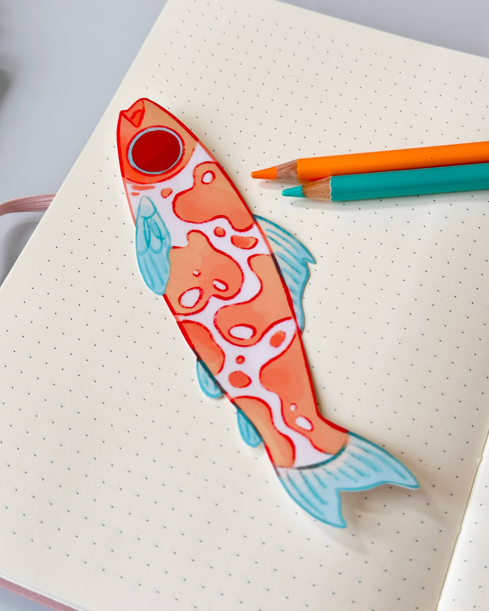 A lovely long boiii sticker featuring the Koi Carp Illustrated by Evy Benita. This sticker is approximately 15cm (6 inches) long.