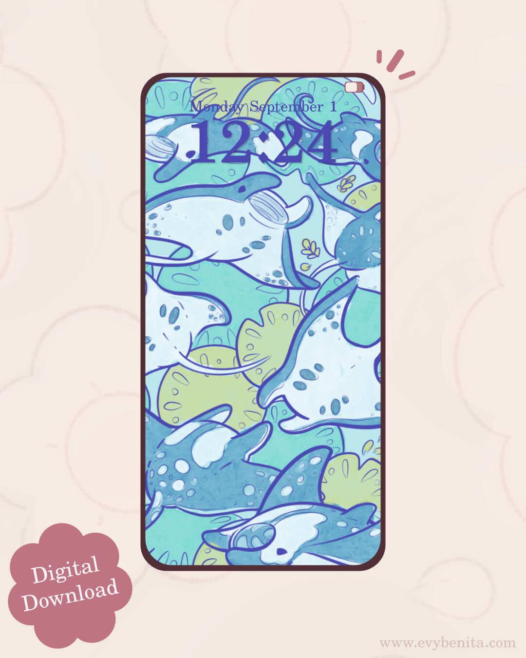 Introducing a lovely wallpaper pack featuring Manta Ray Dreams! Illustrated by Evy Benita, this wallpaper pack is perfect for personalising your phone screen.