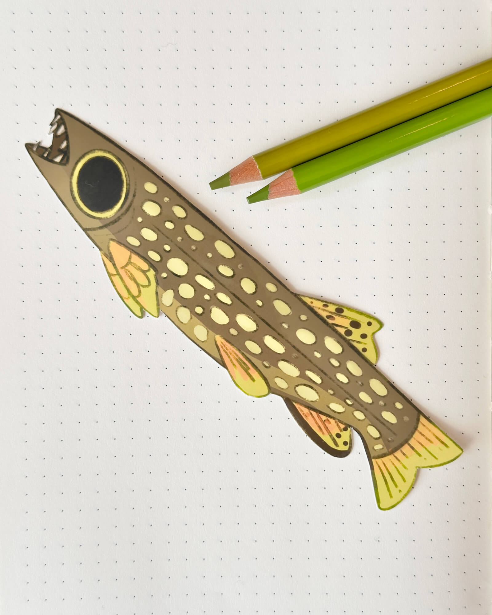 A lovely long boiii sticker featuring the Northern Pike Illustrated by Evy Benita. This sticker is approximately 15cm (6 inches) long.
