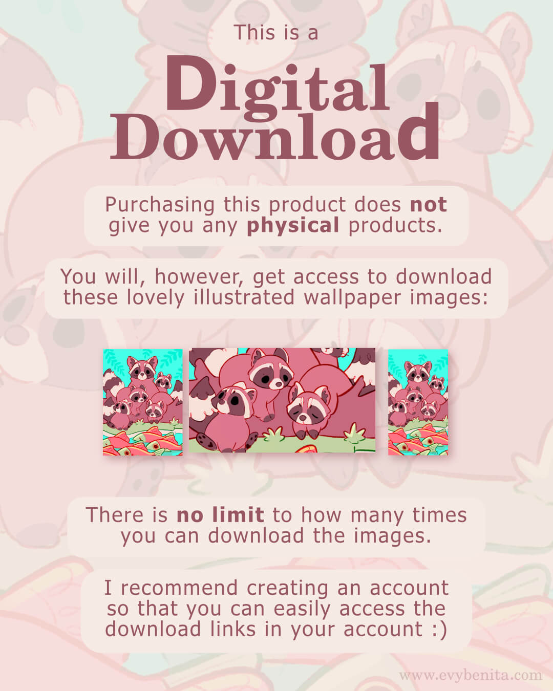 Raccoon Family Digital Wallpaper Pack