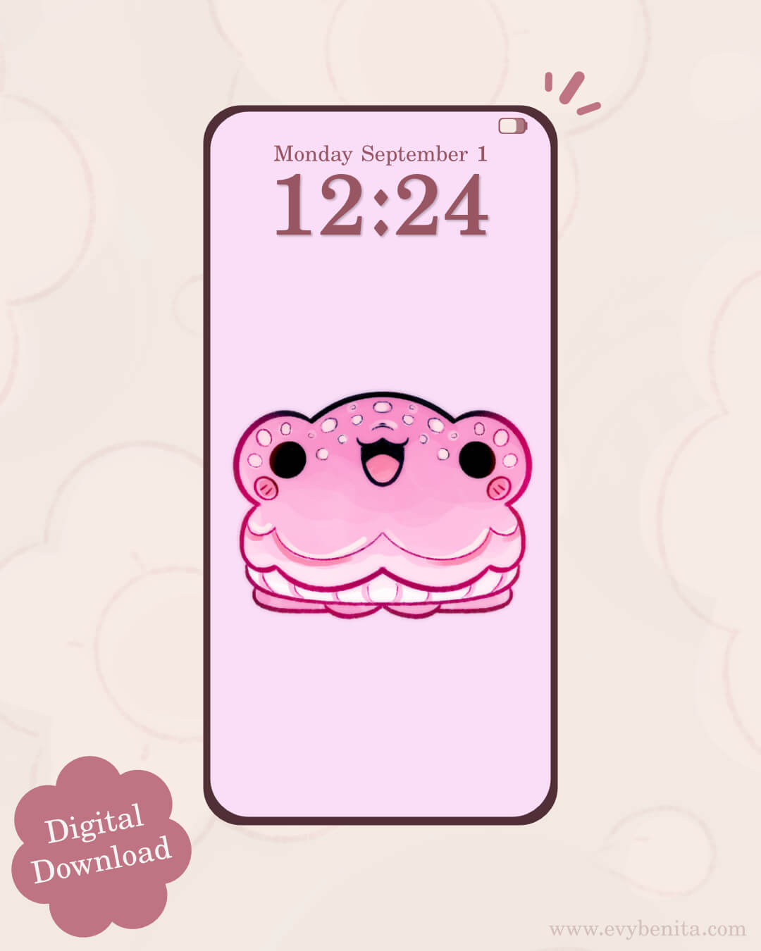 Introducing a lovely wallpaper pack featuring Rosy Blusher Mushroom Frog! Illustrated by Evy Benita, this wallpaper pack is perfect for personalising your phone screen.