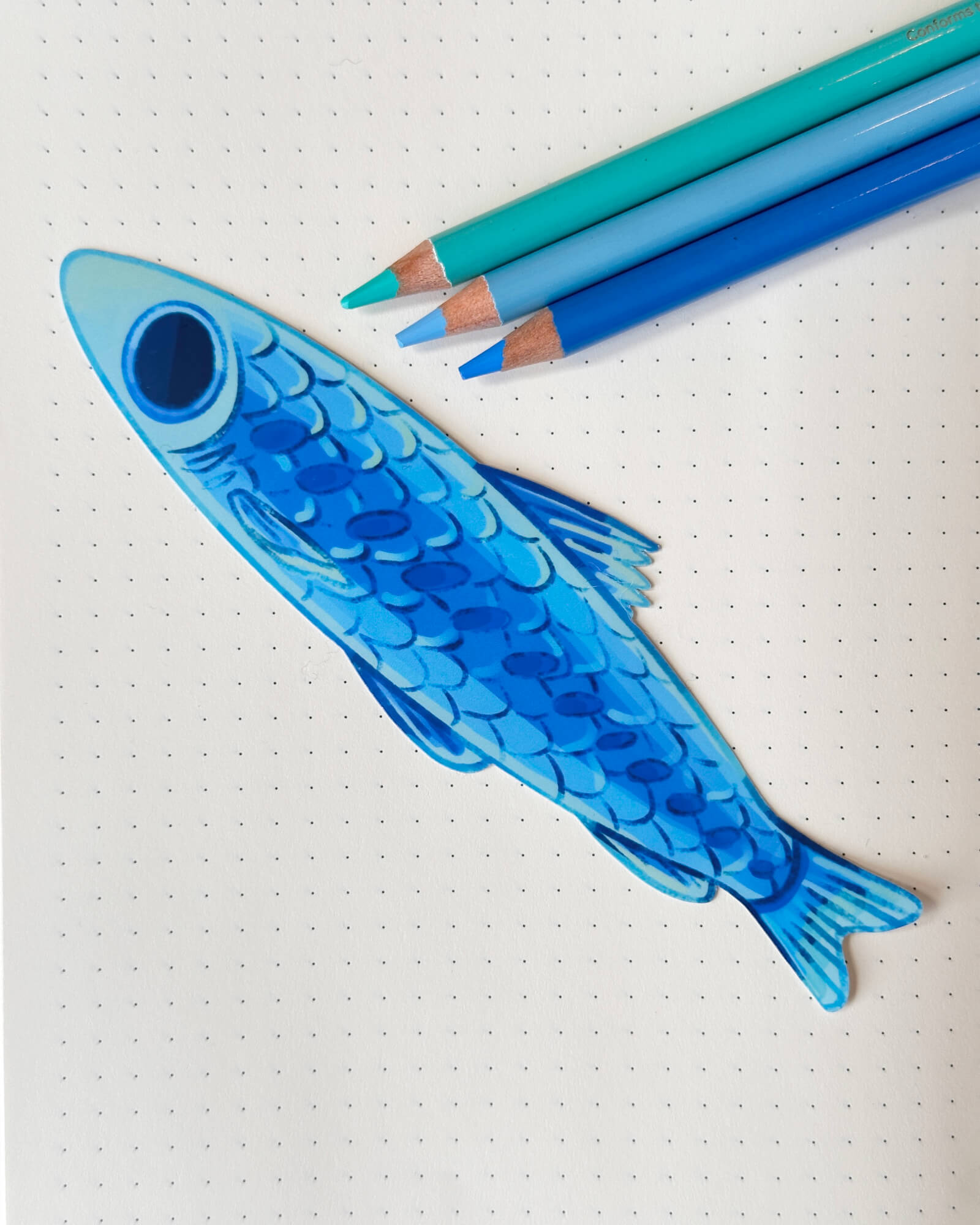 A lovely long boiii sticker featuring the Sardine Illustrated by Evy Benita. This sticker is approximately 15cm (6 inches) long.