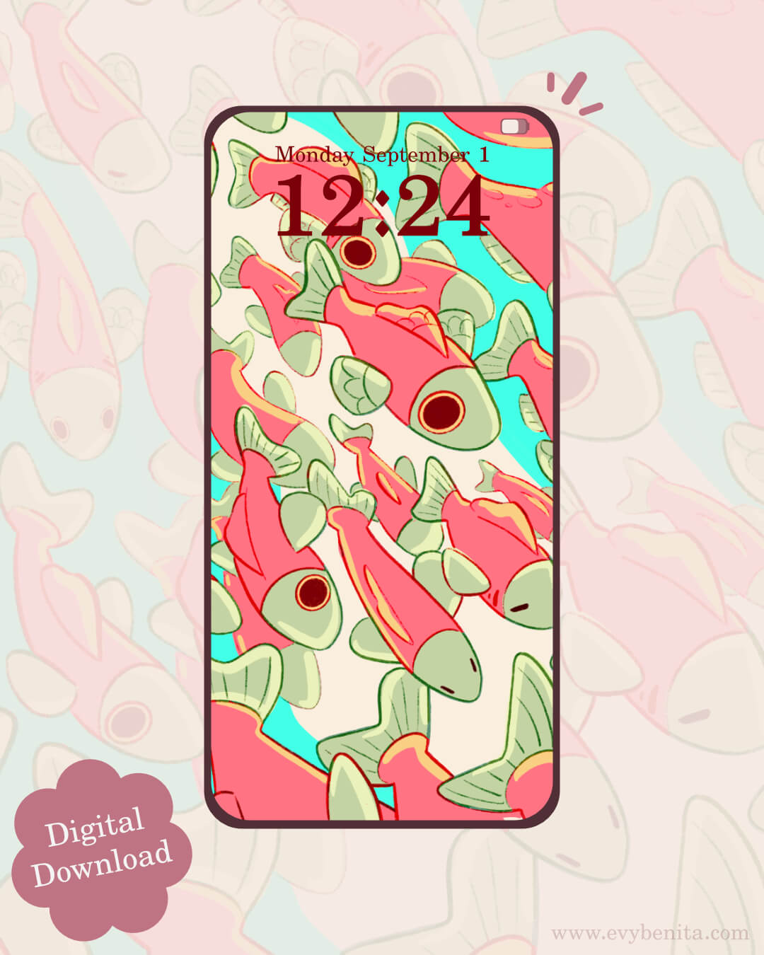 Introducing a lovely wallpaper pack filled with sockeye salmon! Illustrated by Evy Benita, this wallpaper pack is perfect for dressing your devices for cozy fall days.
