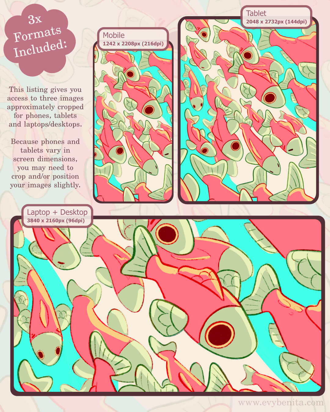 Because different manufacturers of mobile phones and tablets use varying screen dimensions, your device might ask you to crop and reposition your wallpaper slightly. If you ever feel like you’re losing an important part of the illustration because of this, please don’t hesitate to get in touch with me. I’m more than happy to send you an image with better bleed.