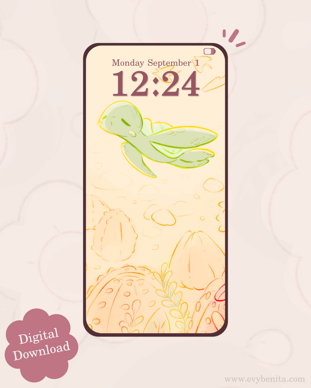 Introducing a lovely wallpaper pack featuring Sea Turtle Urchin Reef! Illustrated by Evy Benita, this wallpaper pack is perfect for personalising your phone screen.