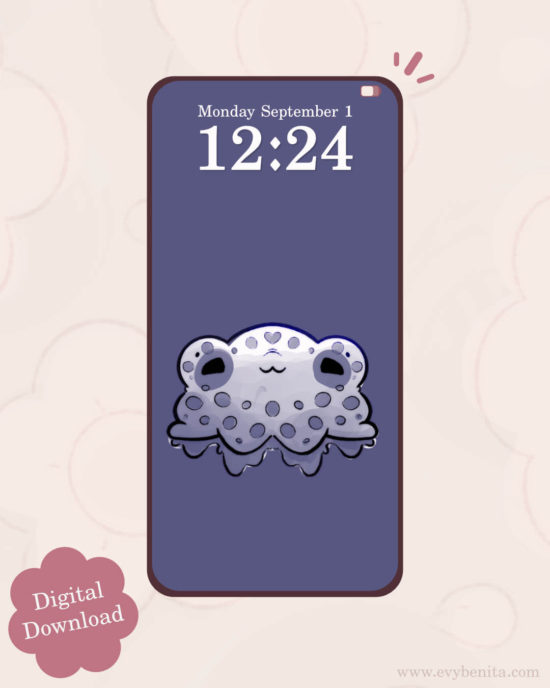 Introducing a lovely wallpaper pack featuring Shaggy Ink Cap Mushroom Frog! Illustrated by Evy Benita, this wallpaper pack is perfect for personalising your phone screen.