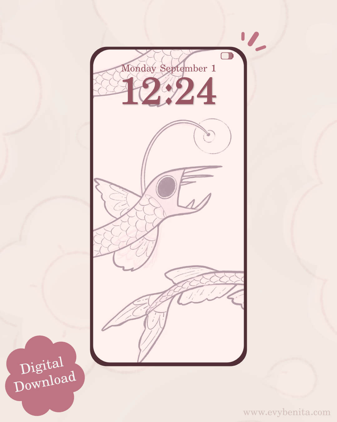 Introducing a lovely wallpaper pack featuring Sketchy Viperfish! Illustrated by Evy Benita, this wallpaper pack is perfect for personalising your phone screen.