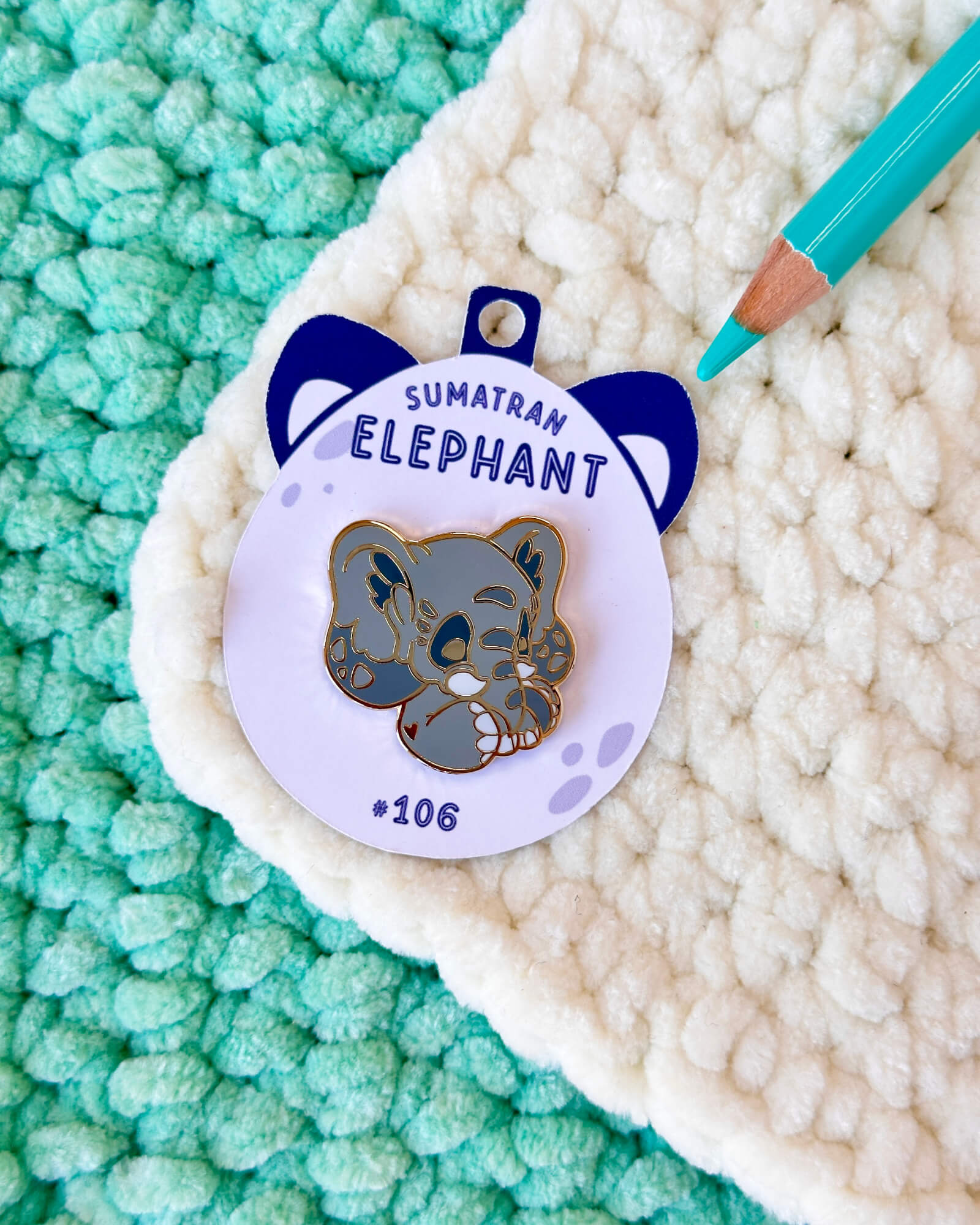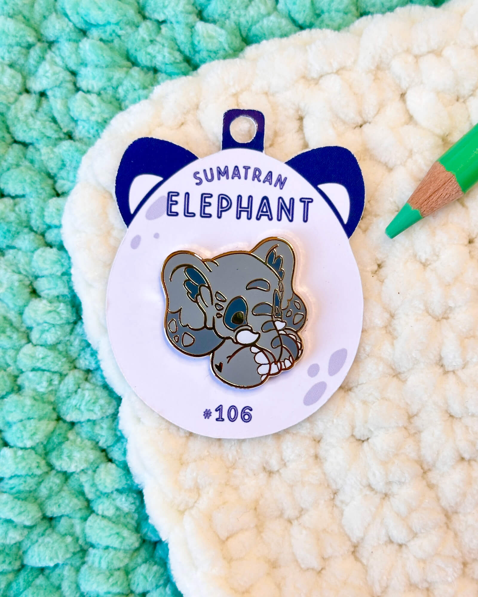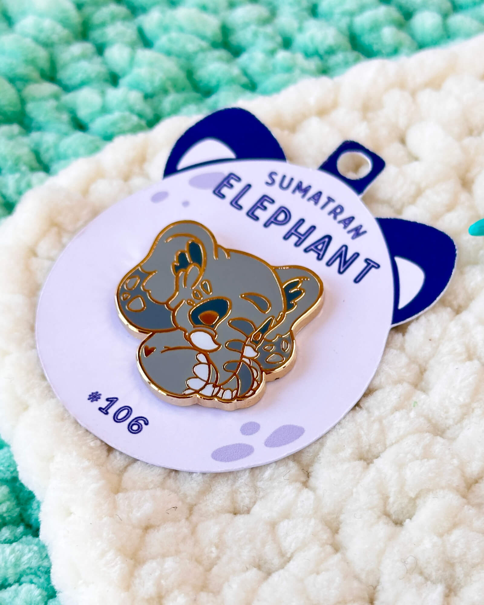 A cute enamel pin featuring the sumatran elephant! This cozy enamel pin is part of my Critumi wildlife series and makes a wonderful gift for both pin badge and animal lovers. Made with gold plated metal and hard enamel.