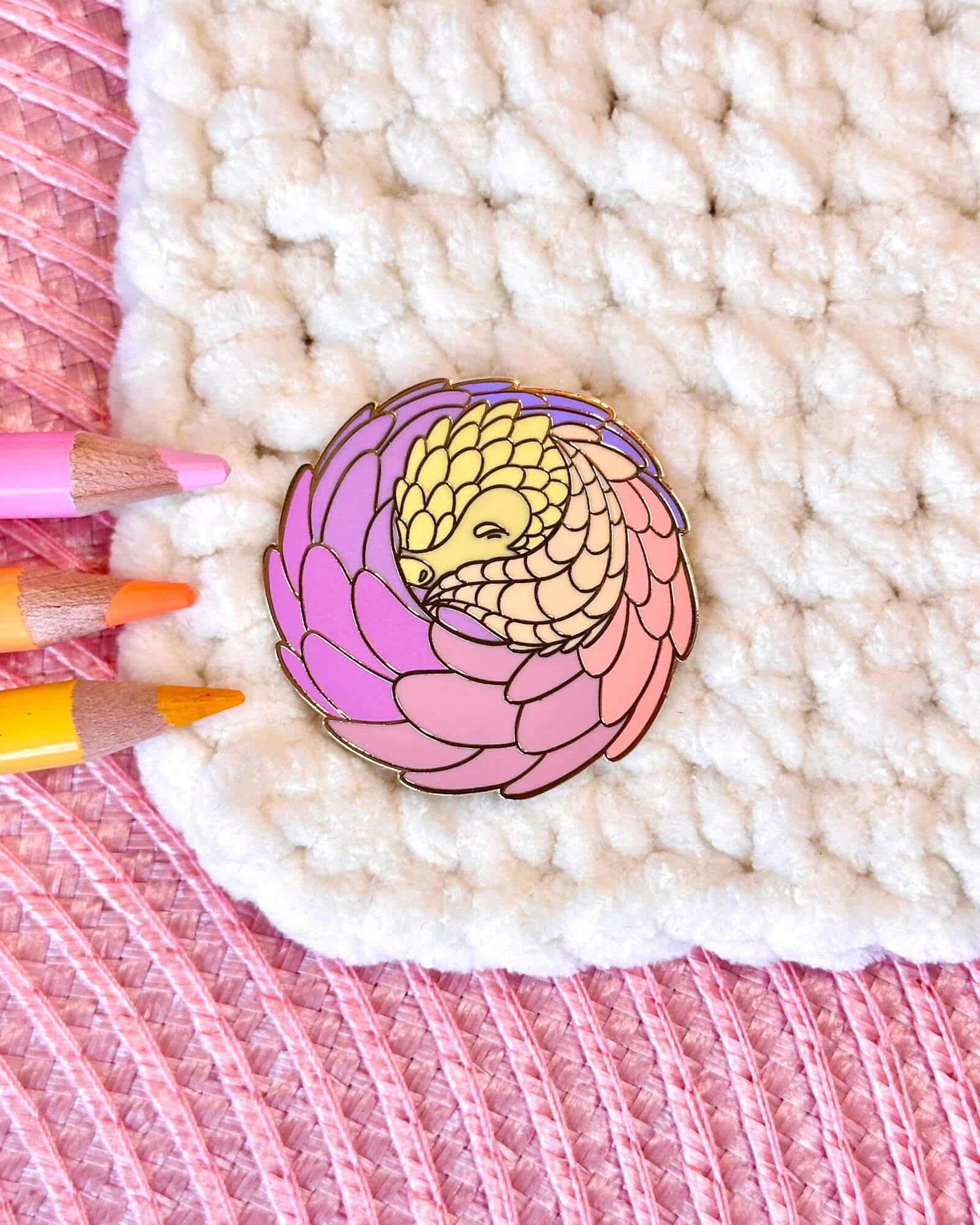 Tea Rose Pangolin Enamel Pin Badge
