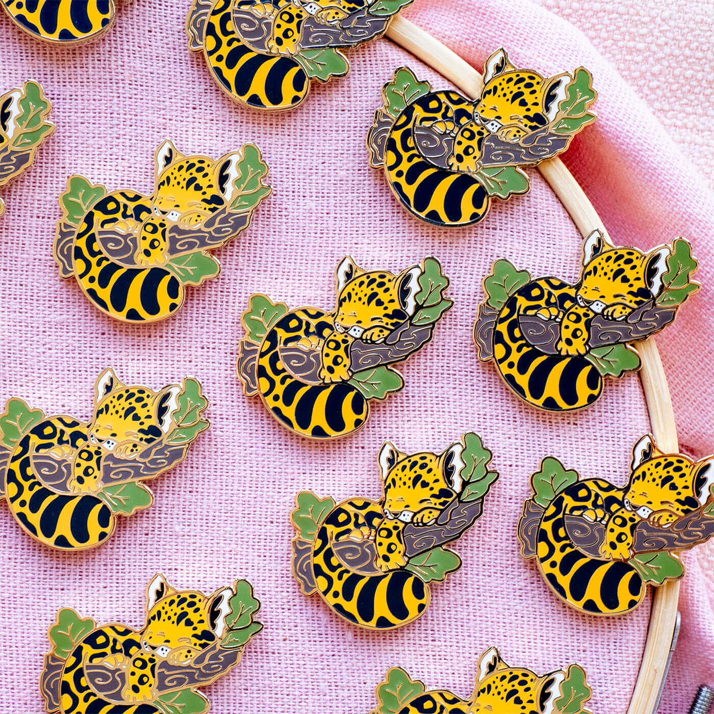 A sweet and sleepy kitten on a branch! This cute enamel pin features the Amur leopard: a big cat species native to the Primorye region of southeastern Russia and northern China.