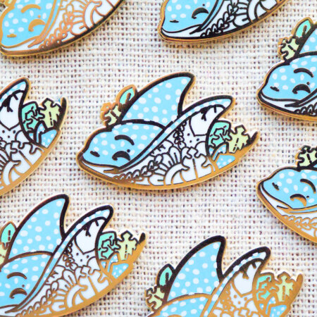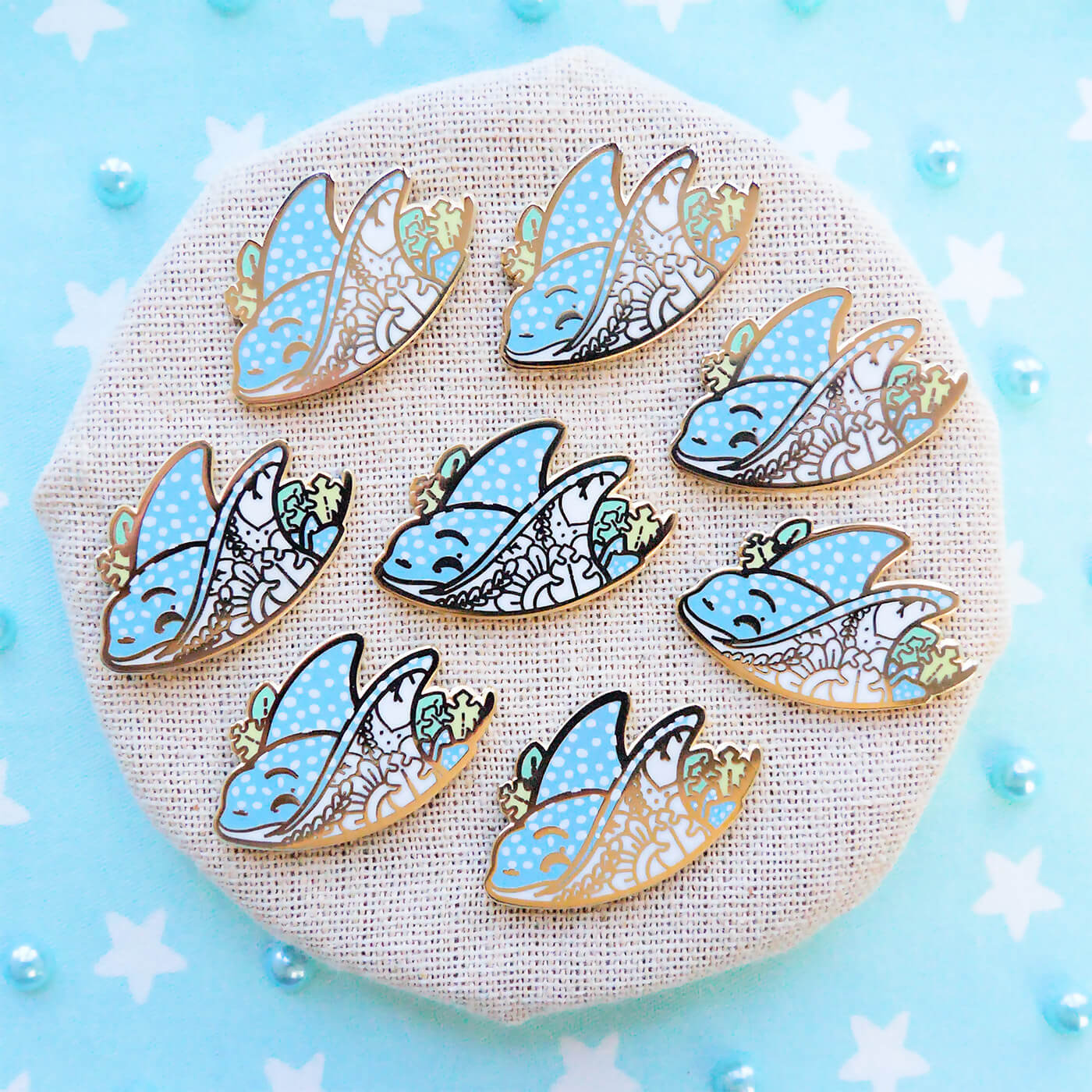 This Spotted Eagle Ray enamel pin is piece number five in my Sidekicks Club collection! Made with vibrant shades of blue, white and green enamel, this pin badge makes for a lovely piece to add to your sea creature collection. The Eagle Ray comes presented on a collectible Species Card, along with an additional card for your collection.