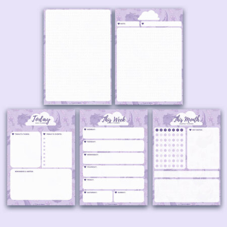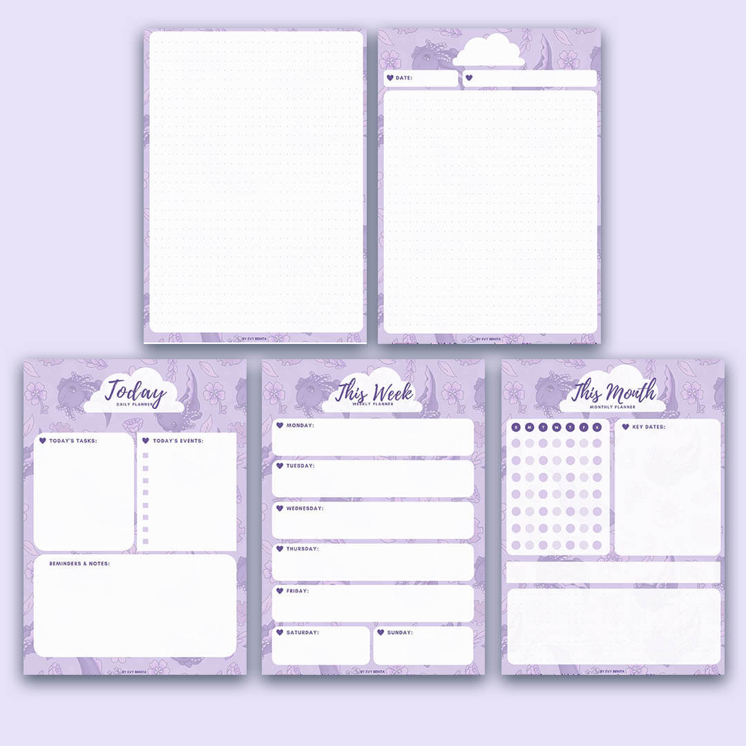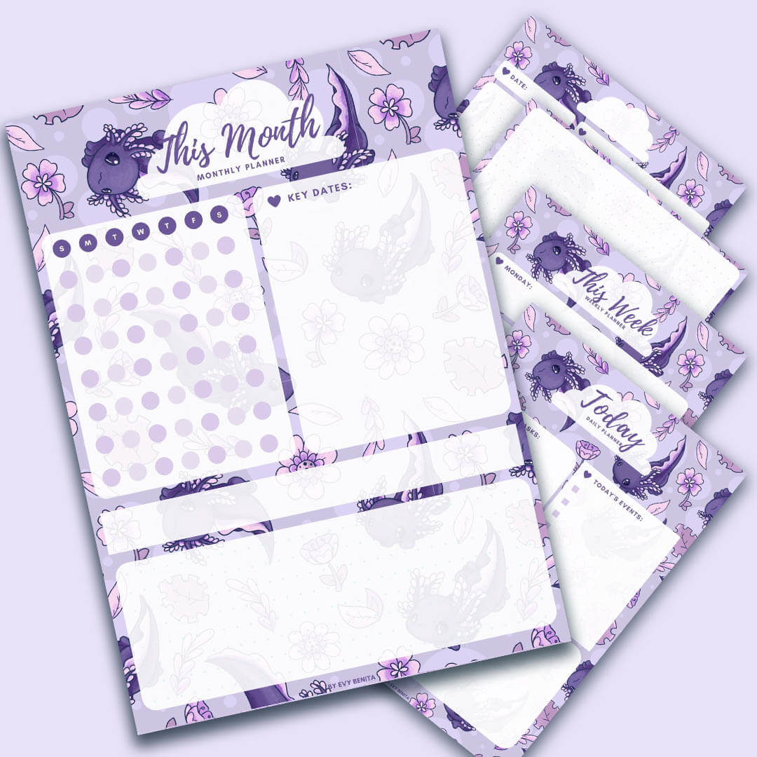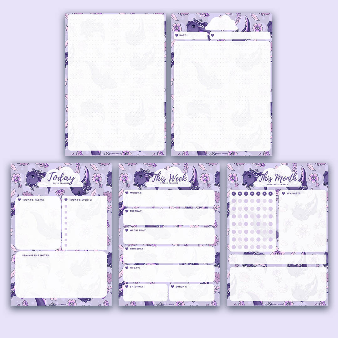- Each page comes in two design variations: one with the axolotl pattern, and one with a color overlay for a more subtle design.